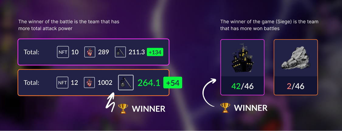 The victorious battle is recorded in the total score of the Siege of the Castle. At the end of the Siege (~14 days), the team with the most victories in battles is considered the winner.