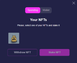 Select the NFT to play and click "Stake NFT":